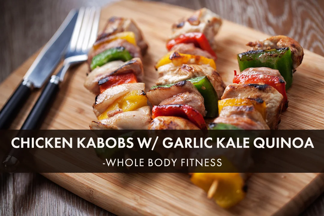 Real Simple Grilled Chicken Kabobs w/ Garlic Kale Quinoa